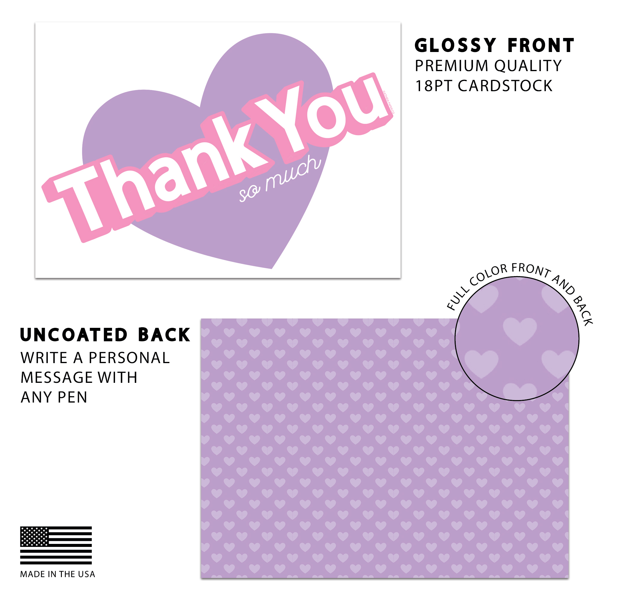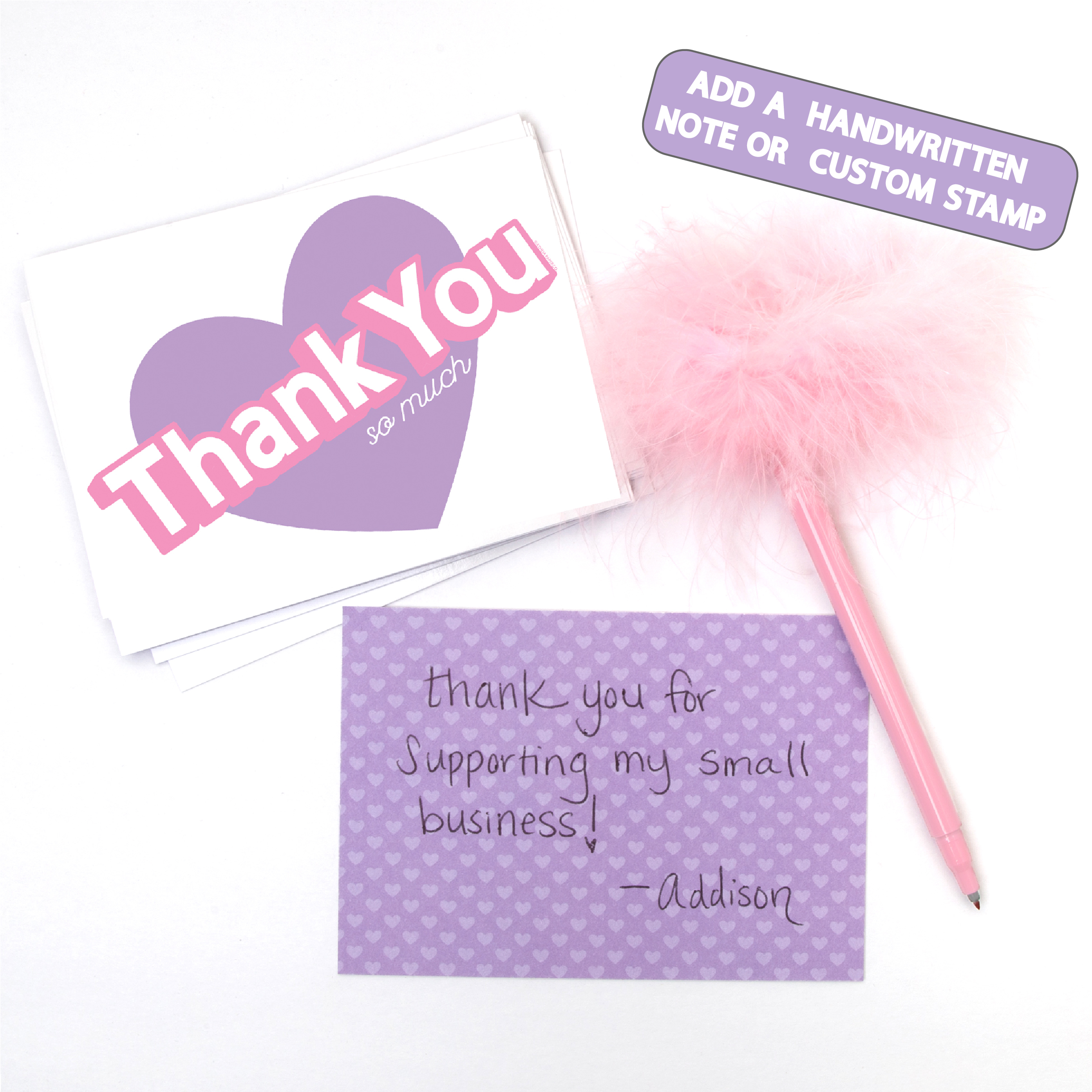 VERSATILE DESIGN Aesthetic pink and purple heart design is perfect for small businesses, teachers, students, baby shower thank you cards, reseller gifts & more! Can also legally be mailed as a small postcard.
